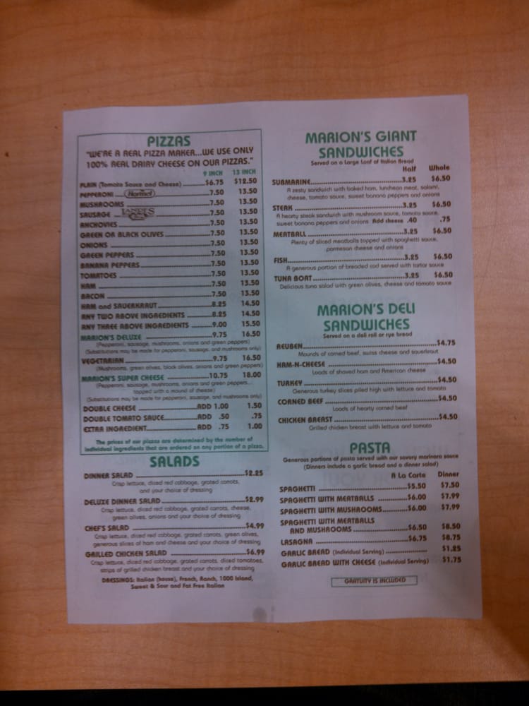 - Pizza: Their specialty pizzas, including the Marion's Deluxe and Super Cheese, feature fresh toppings and a satisfyingly crisp crust that keep locals coming back.